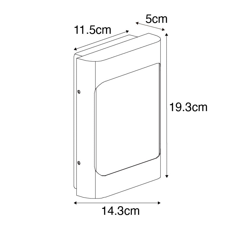 : Diepte 5 cm - hoogte 19.3 cm - lengte 14.3 cm
