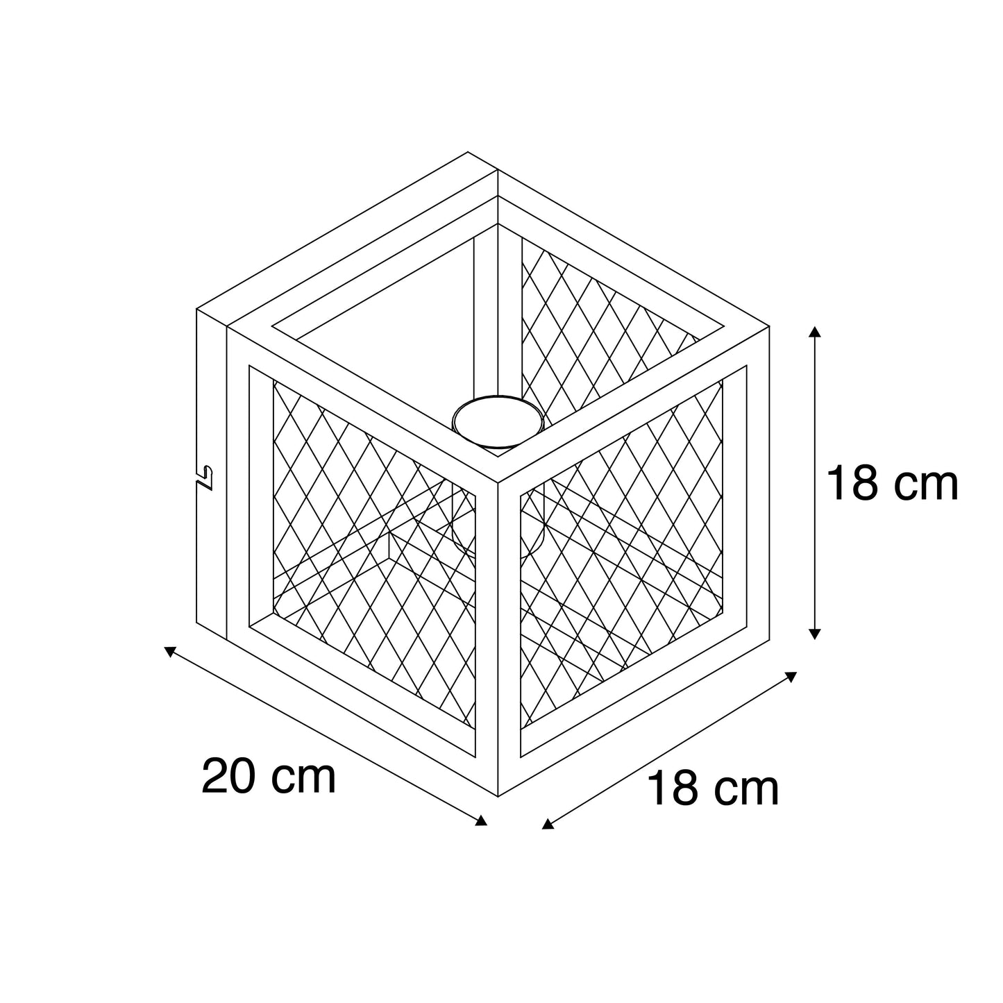 : Diepte 20 cm - hoogte 18 cm - lengte 18 cm